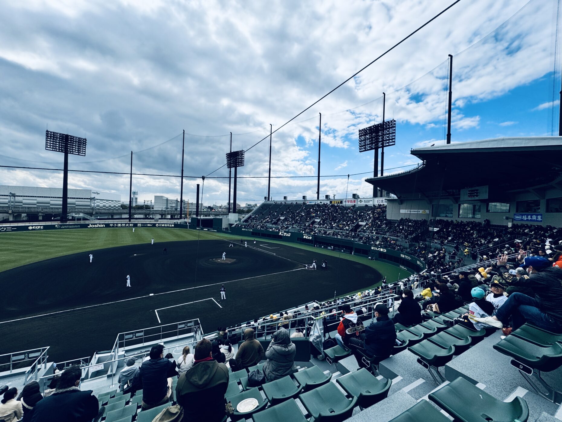 普通の1軍が使う球場より、スタンドがグラウンドに近いという感じがします。大きな球場でみる野球もいいですが、こじんまりとした球場で、選手を間近に眺めながら楽しむ野球観戦もまた、いいものだな、と思いました。